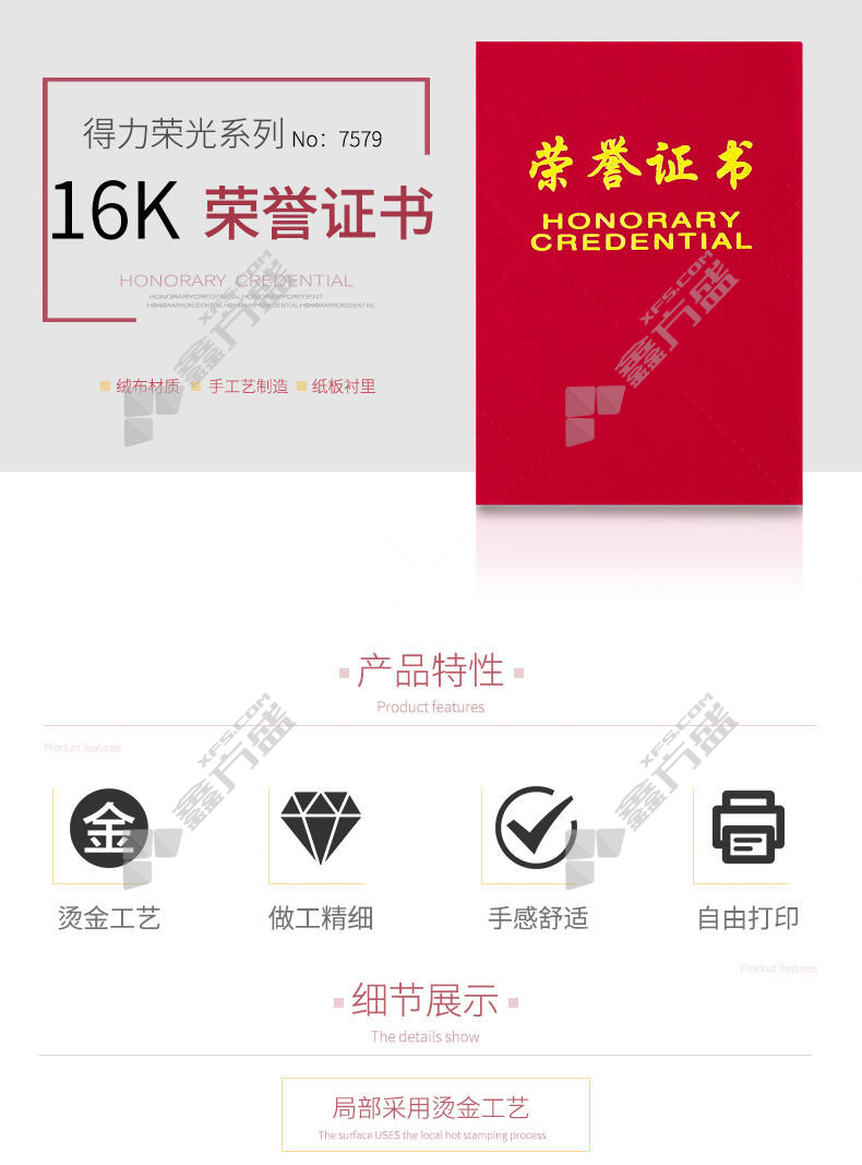 商品名称: 得力 7579 荣誉证书荣光 16K 红色