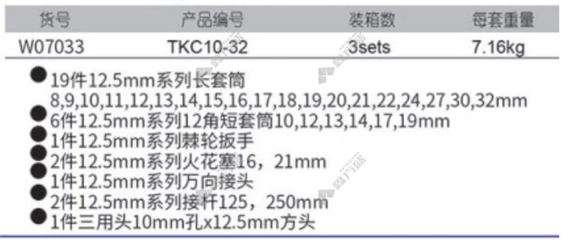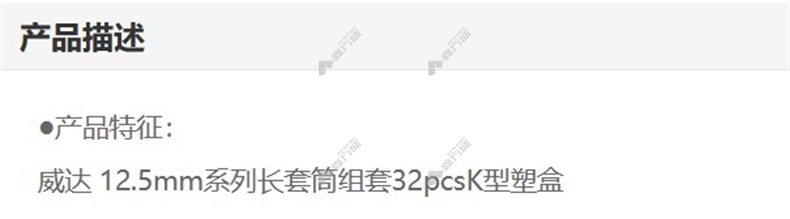 商品名称: 威达WD 12.5mm系列长套筒组套型塑盒 32Kpcs型塑盒 W07033