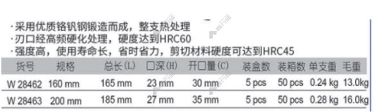 商品名称: 威达WD 工业级斜嘴钳 新 200mm W28463