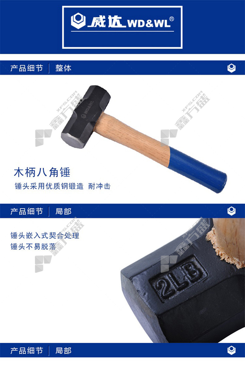 商品名称: 威达 木柄八角锤 W24141 2LB 270mm