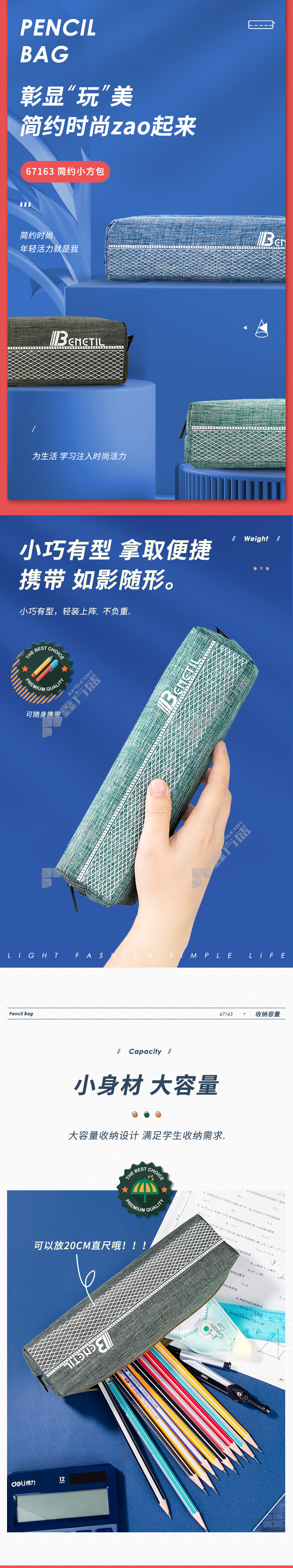 笔袋材质:牛津布、聚酯纤维