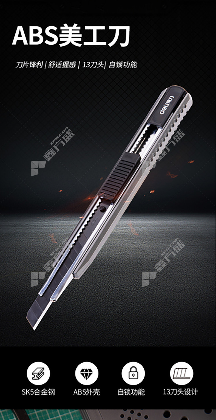 商品名称: 得力deli 2036S美工刀 2036S 9mm*13刀头 金属灰色