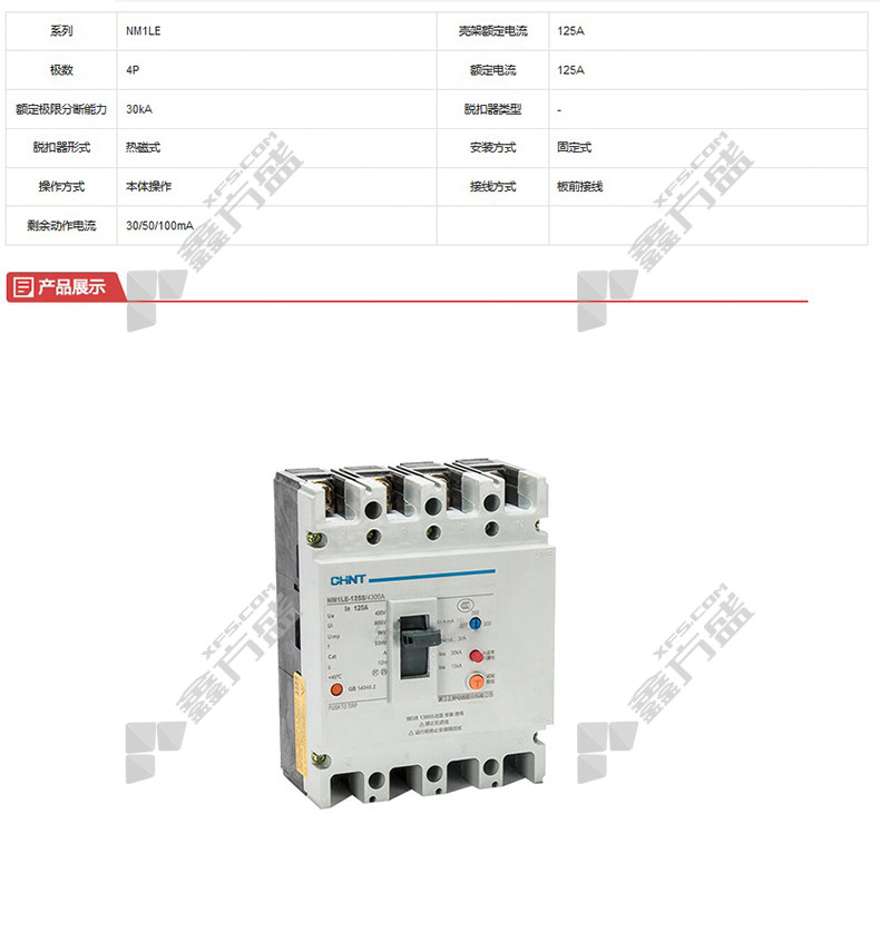 商品名称: 正泰 CHNT 塑壳漏电保护断路器 NM1LE-125S/4300A NM1LE-125S/4300A 63A 30.50.100mA