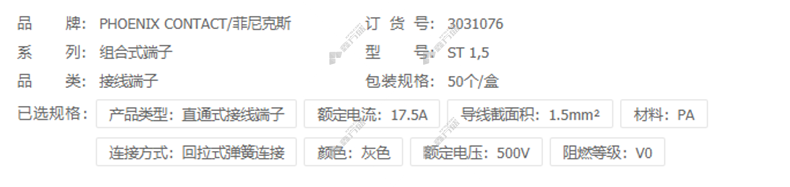 商品名称: 菲尼克斯 接线端子ST系列 ST 2,5-3PV