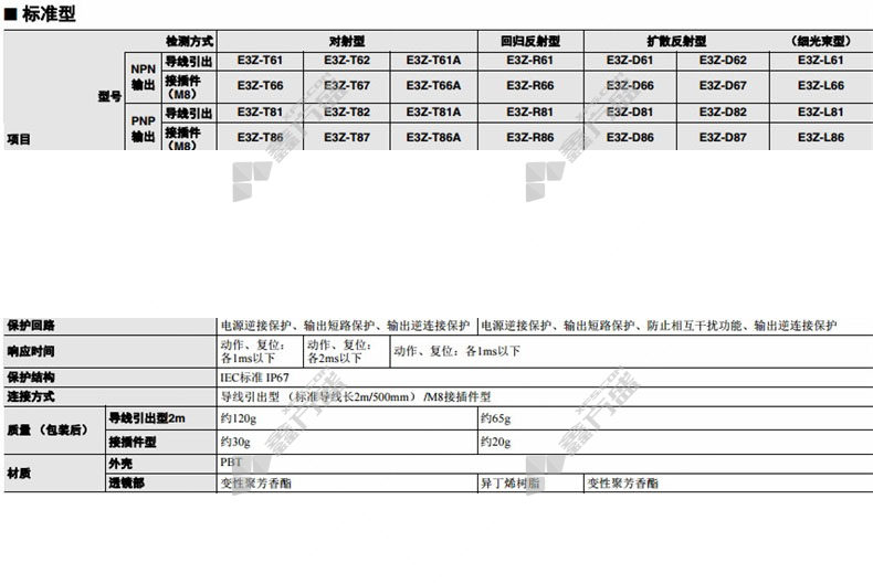 产品型号: E3Z-T61-D 2M BY OMS