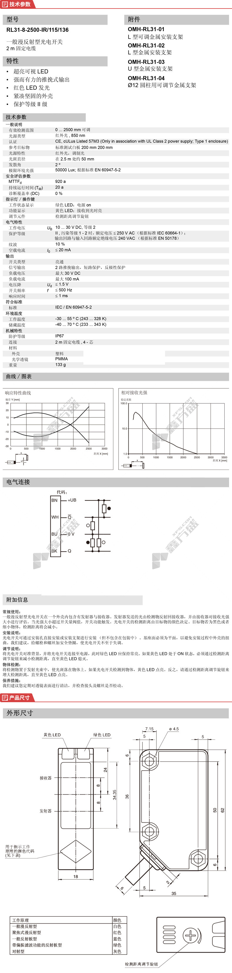 商品名称: 倍加福PEPPERL+FUCHS 漫反射型传感器RLK31系列 RLK31-8-1200-RT/31/115