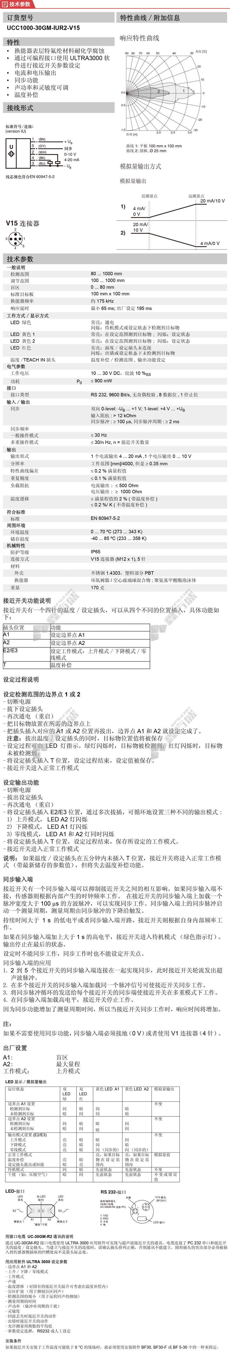 商品名称: 倍加福PEPPERL+FUCHS 漫反射和反射板式传感器UCC1000系列 UCC1000-30GM-IUR2-V15