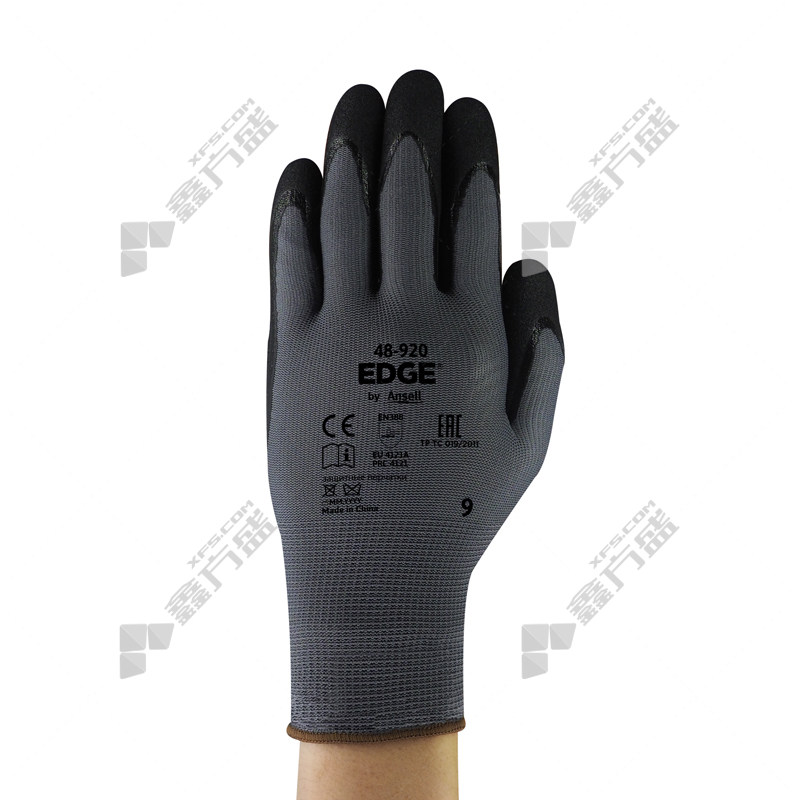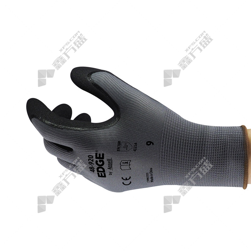 安思尔 48-920晴橡胶挂胶手套 8码 黑色 48-920