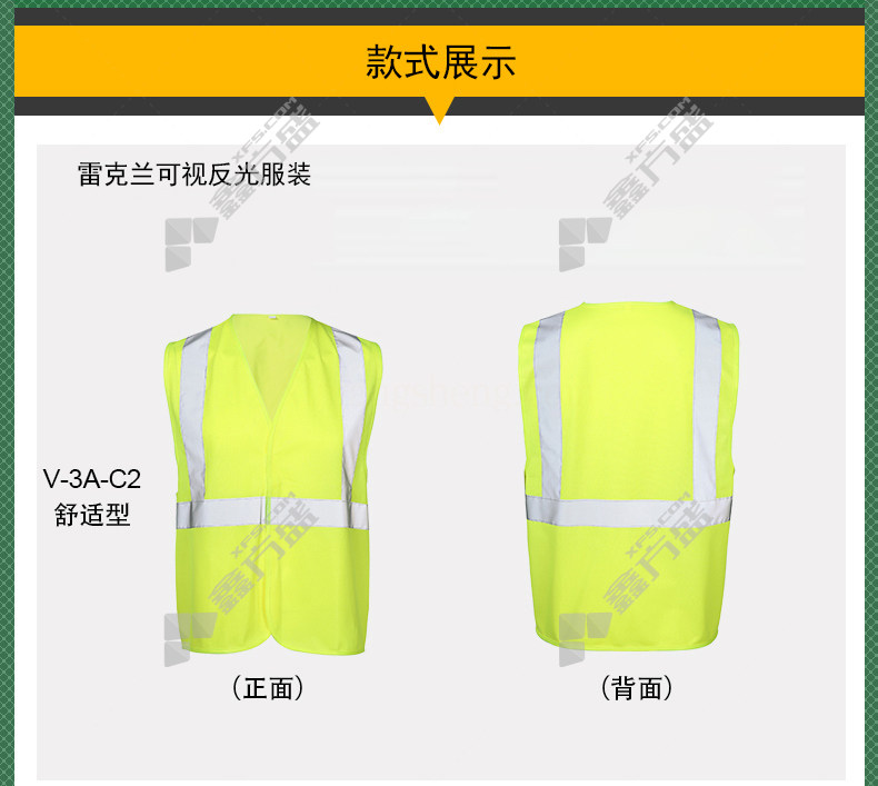 商品名称: 雷克兰 V-AM-C2基础款反光背心 XL码 荧光黄 V-AM-C2