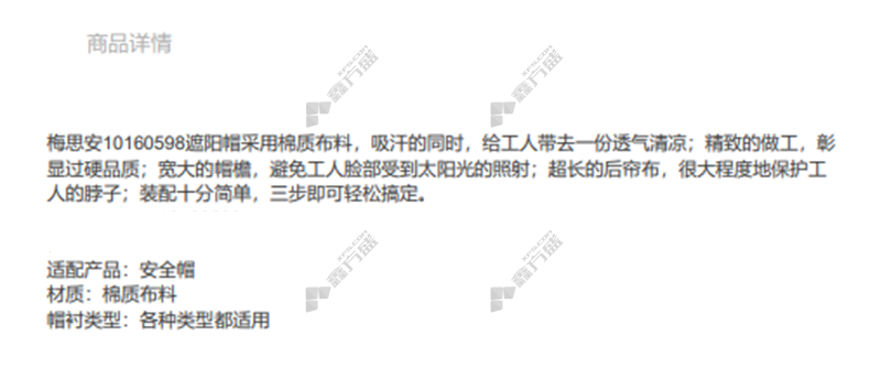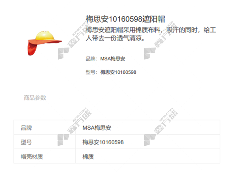 商品名称: 梅思安小号遮阳帽 10160598 透气型