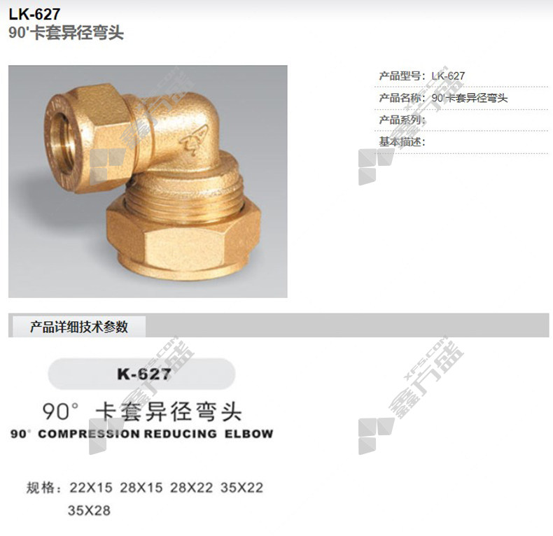 商品名称: 埃美柯 627卡套异径弯头90度 DN32