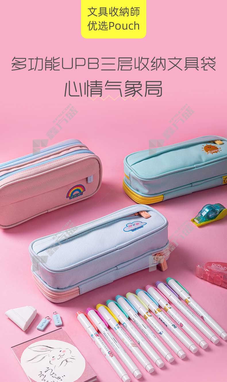 • 尤斯隆 UPB2多功能UPB三层文具收纳袋 浅蓝 UPB2-CB