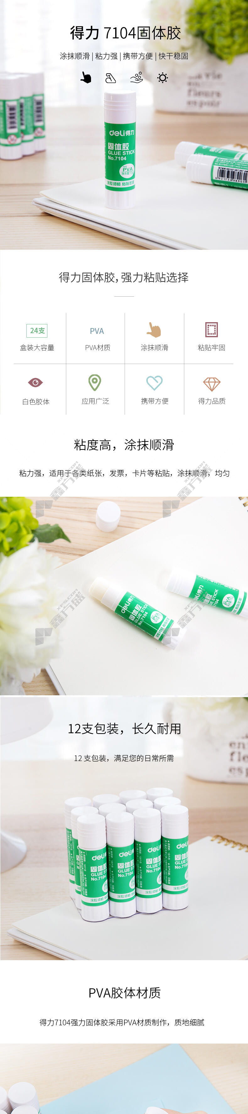 商品名称: 得力 7104 固体胶 15g 白色
