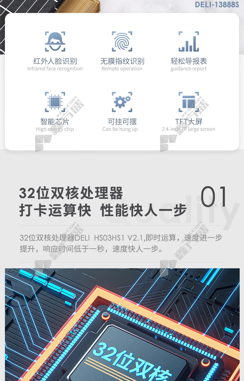 商品名称: 得力deli 13888S 考勤机 银灰 13888S