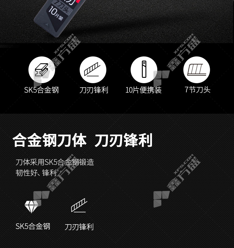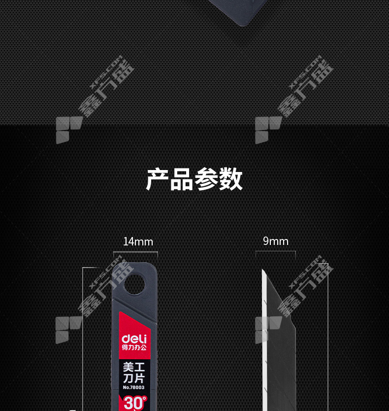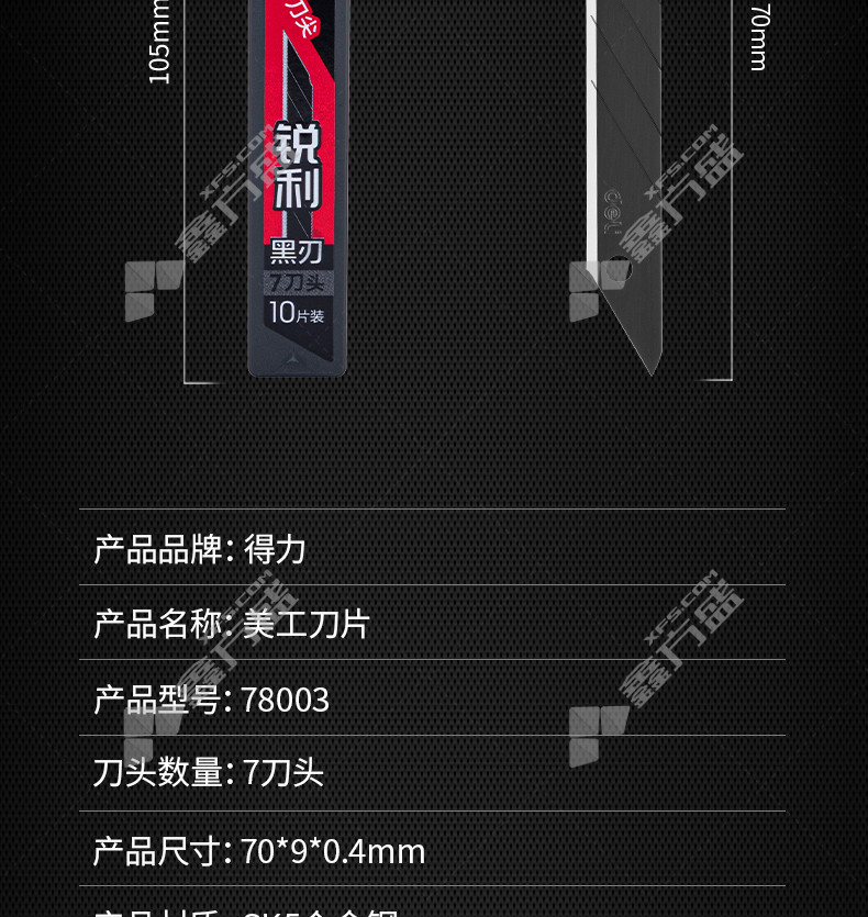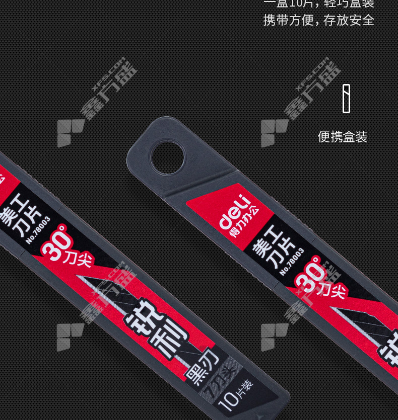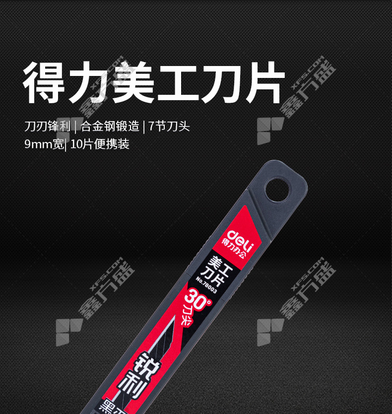 商品名称: 得力deli 78003美工刀片小号黑刃 78003 9mm*7刀头 黑色