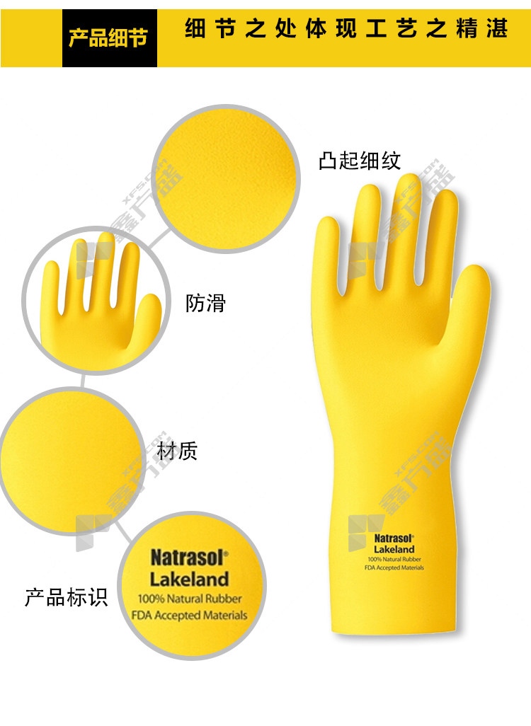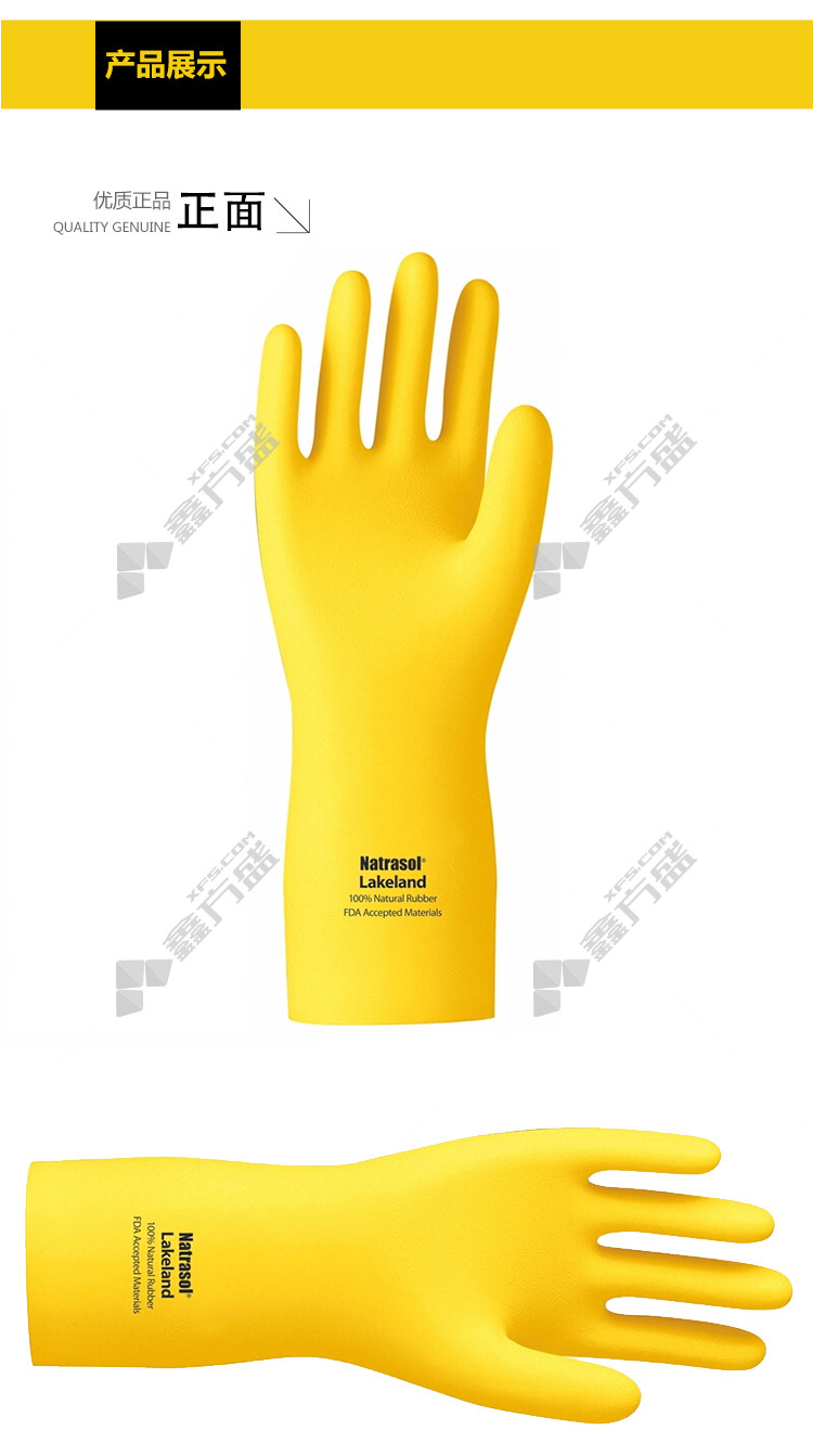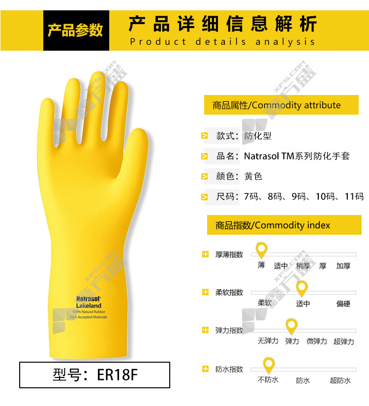 商品名称: 雷克兰 ER18F 橡胶高性能防化手套 11码 黄色 天然橡胶