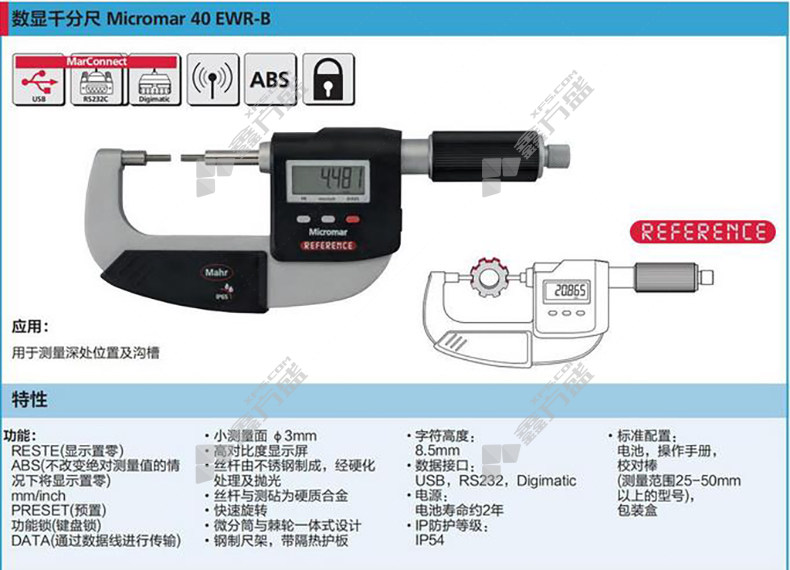 商品名称: 马尔 刀口测量面数显千分尺08*7mm 带数据输出 25-50mm 4157042