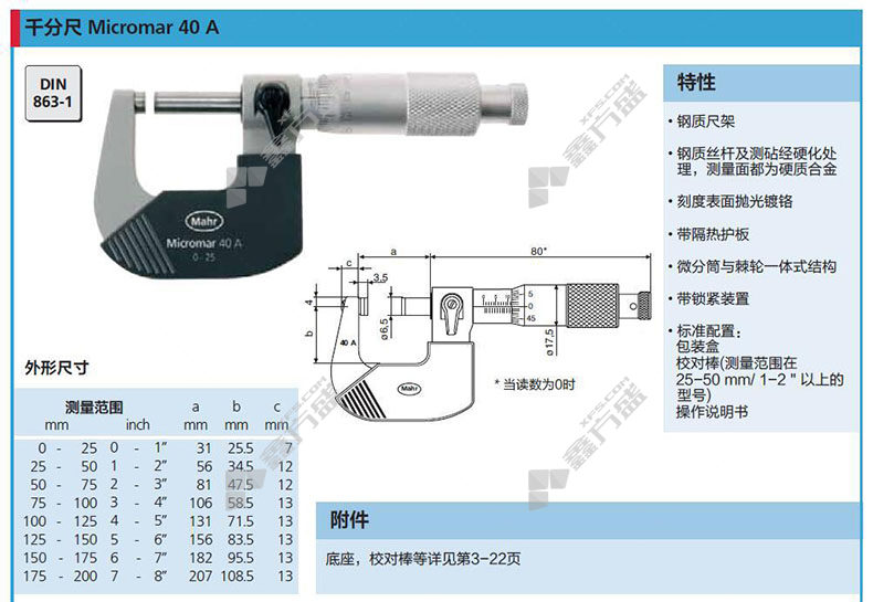 商品名称: 马尔 英制机械千分尺 0-1"mm 4134900