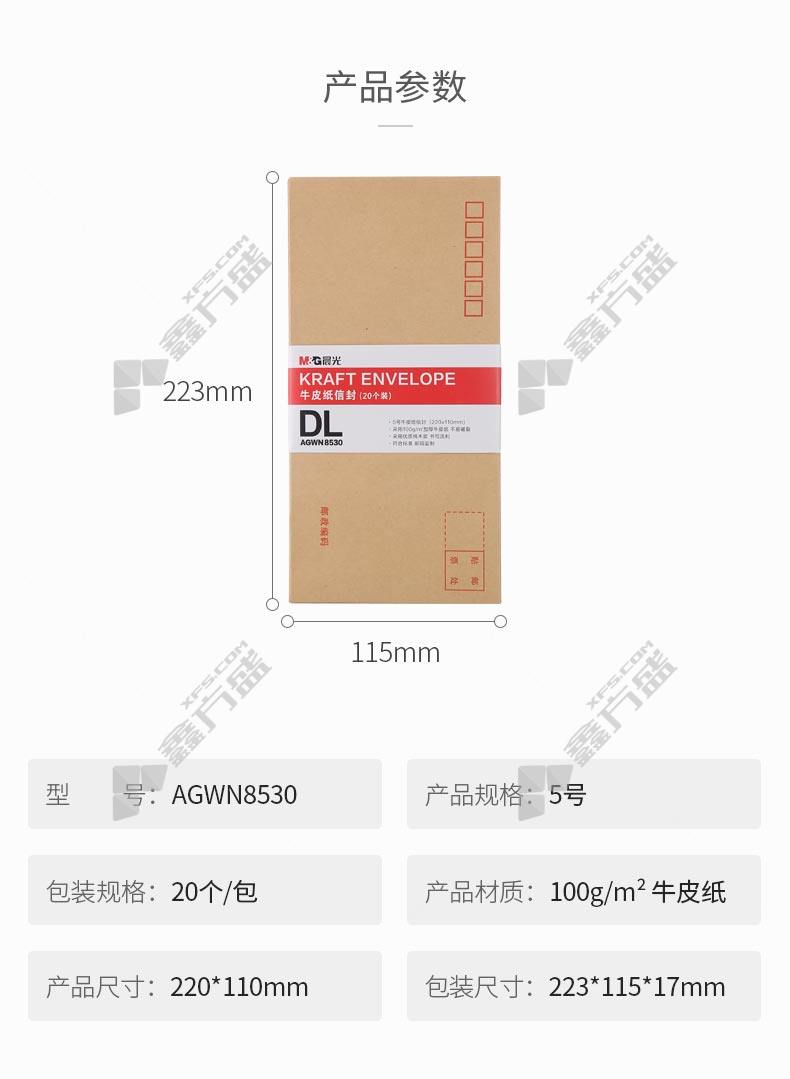 商品名称: 晨光 AGWN8530 DL5号牛皮纸信封 220*110mm 黄色 20个/包