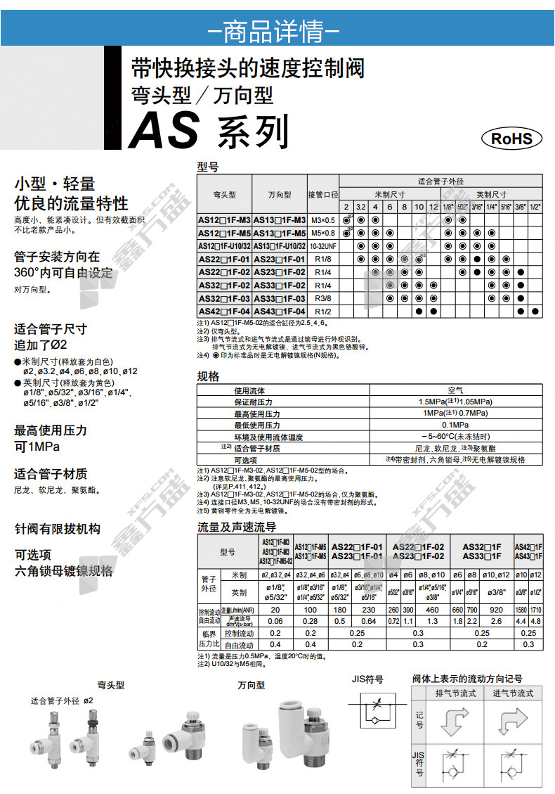 商品名称: SMC 速度控制阀 AS系列 AS2201F-01-06
