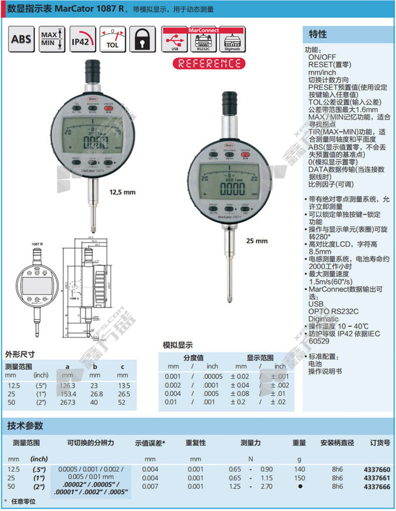 商品名称: 马尔 数显千分表 0,0005/50 4337666