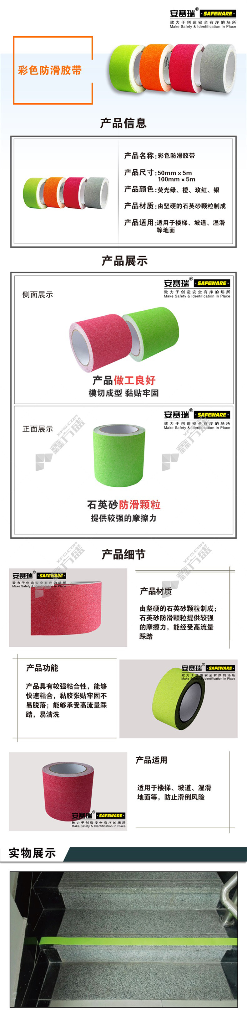 首页 首页 > 安赛瑞 11902 彩色防滑胶带 50mm*5m 11902 橙