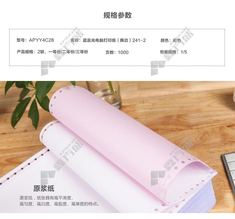 商品规格:1000页/二联/二等分/蓝色/APYY4C28B/撕边