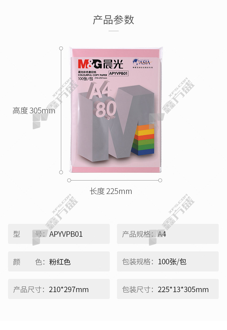 商品名称: 晨光 APYVPB0137 A4彩色复印纸粉红 80g APYVPB0137