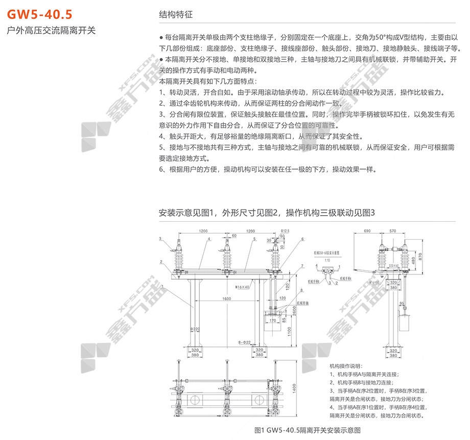 商品名称: 人民电器 高压隔离开关GW5-40.5W系列 GW5-40.5W/630完善化