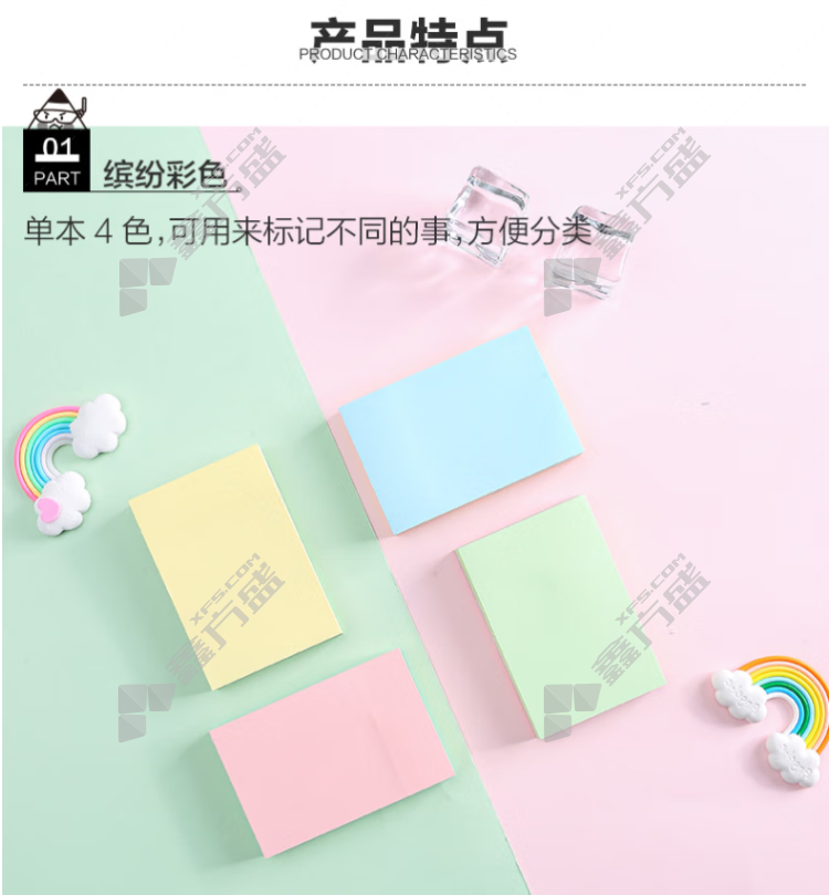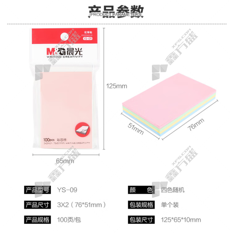 商品名称: 晨光 YS-09 3*2多彩优事贴 76*51mm 100页/本 混色