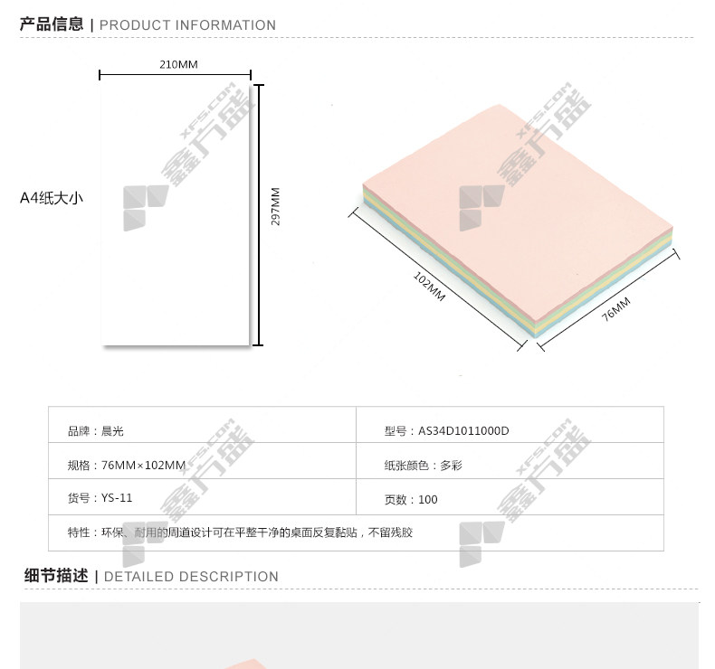 商品名称: 晨光 YS-11 多彩优事贴 76*102mm 100页 黄色 蓝色 红色 绿色