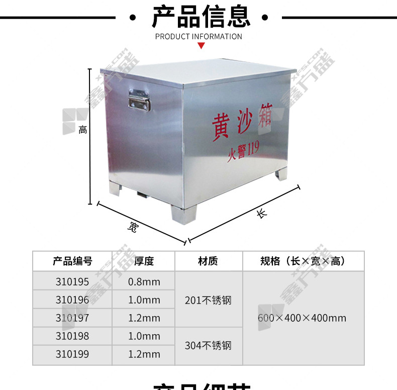 商品名称: 安赛瑞 310199 消防黄沙箱 600*400*400mm厚度1.2mm 310199