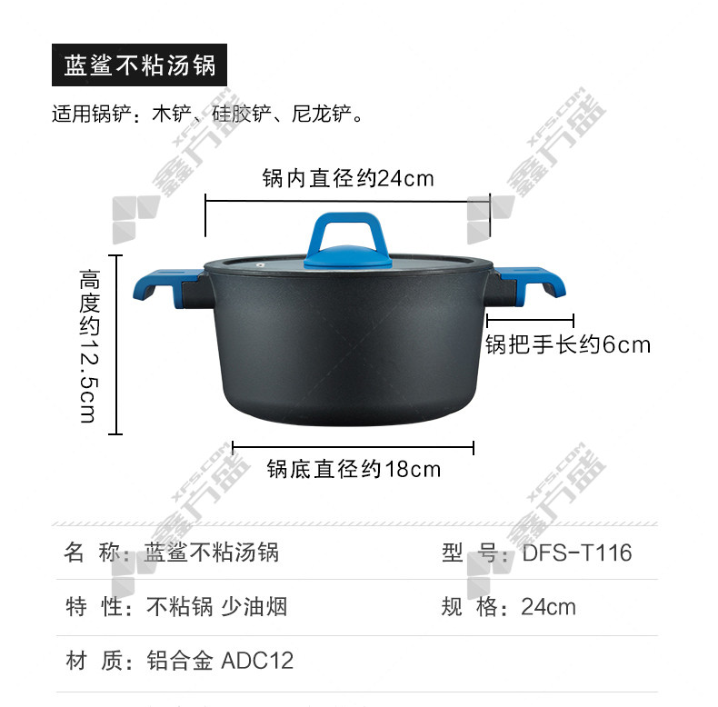 商品名称: 德世朗 蓝鲨不粘汤锅 24cm DFS-T116