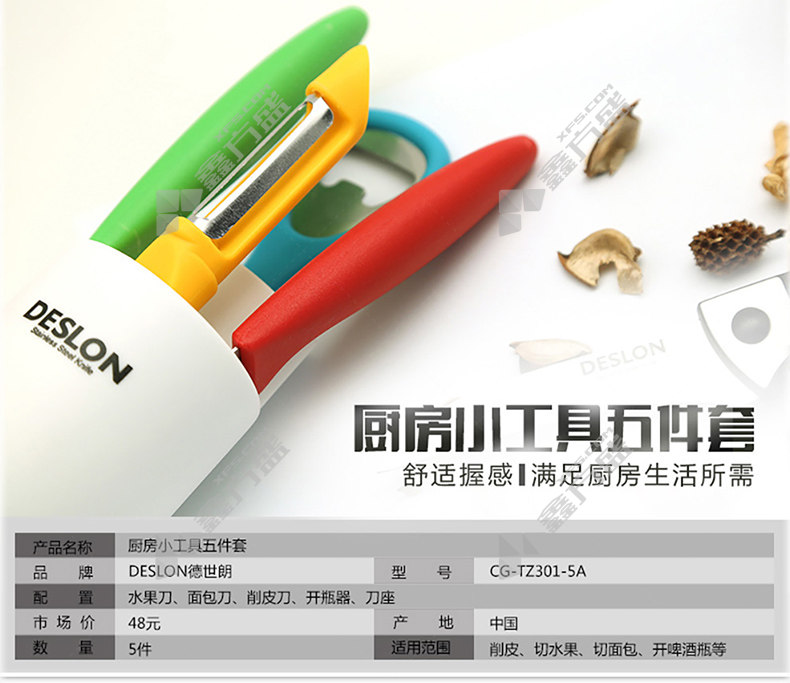 商品名称: 德世朗 厨房工具五件套 水果刀、面包刀、开瓶器、刨刀、刀座