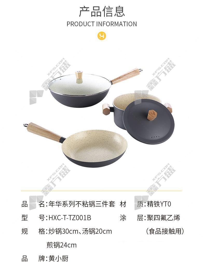 商品名称: 黄小厨 年华系列不粘锅三件套 HXC-T-TZ001B 4.58kg