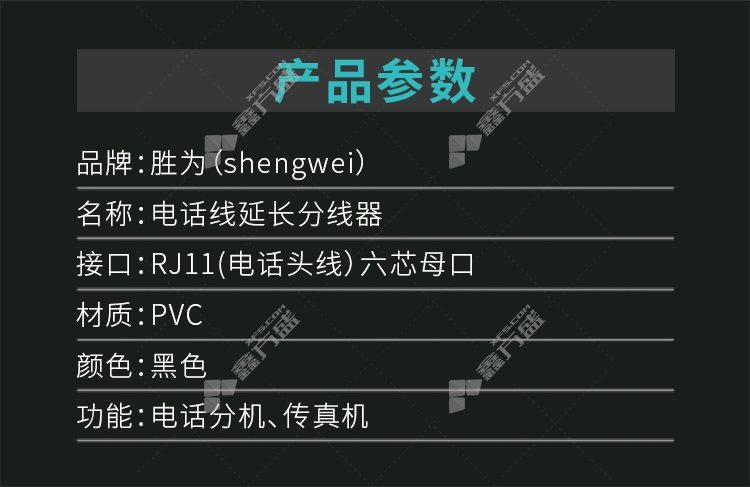 商品名称: 胜为 分线器 SH-230 RJ11延长电话线同时连接2台设备 黑色 三通头一分二电话分线器