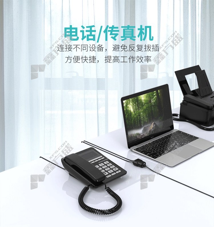 商品规格:RJ11延长电话线同时连接2台设备 黑色 三通头一分二电话分线器