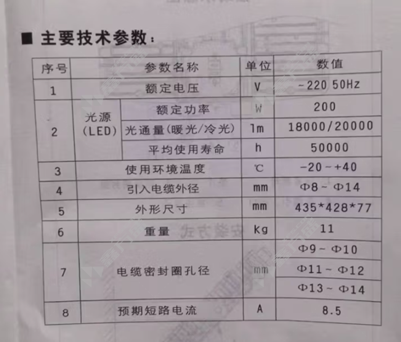 包装清单:LED防爆泛光灯*1台