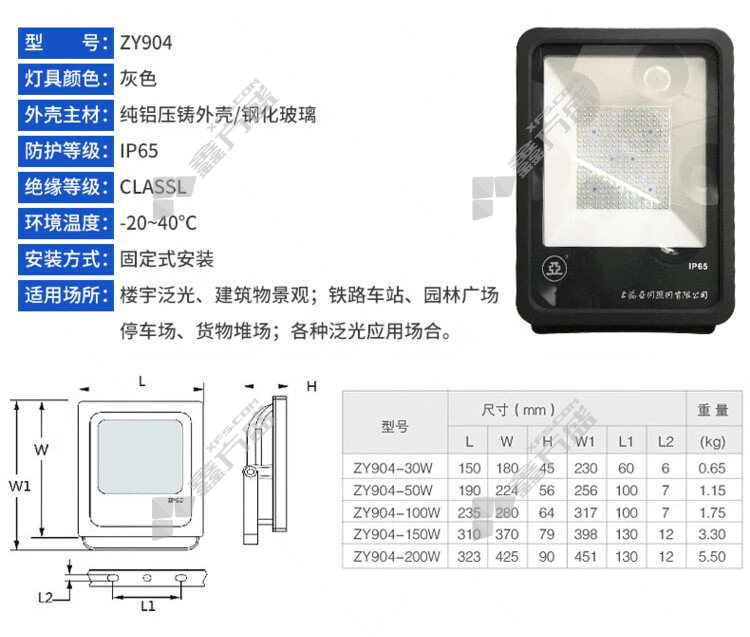 商品名称: 亚明 YAMING LED投光灯 白光 ZY904 100W 5700K
