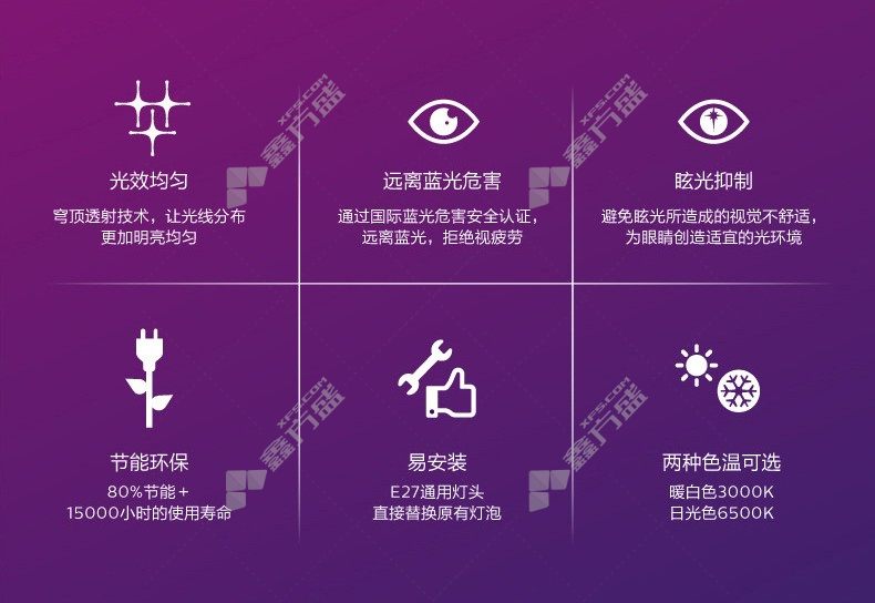 商品规格:E27灯头/6500K
