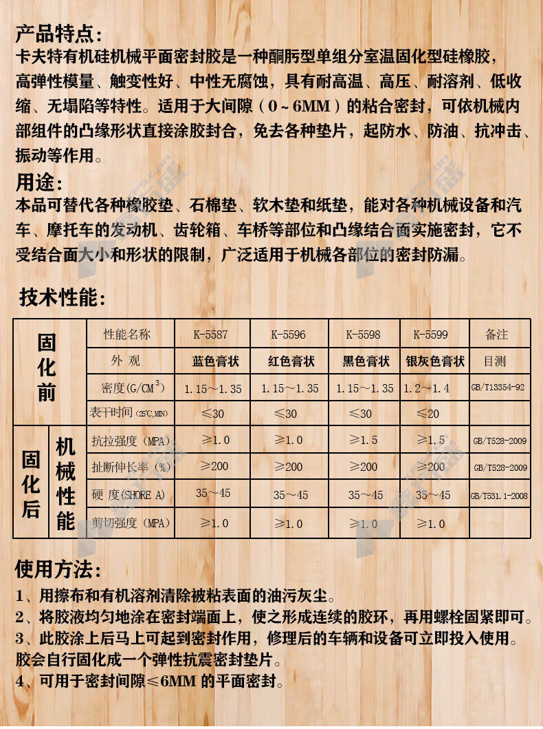 商品名称: 卡夫特 K-5596 RTV平面密封胶 300ml K-5596 红色