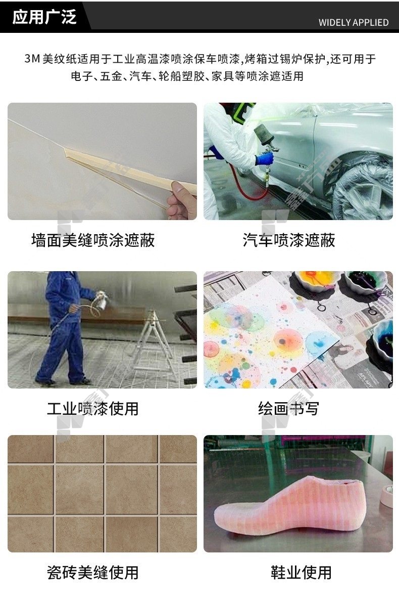 应用场景:适用于各种产品表面的耐高温烤漆喷漆遮蔽保护