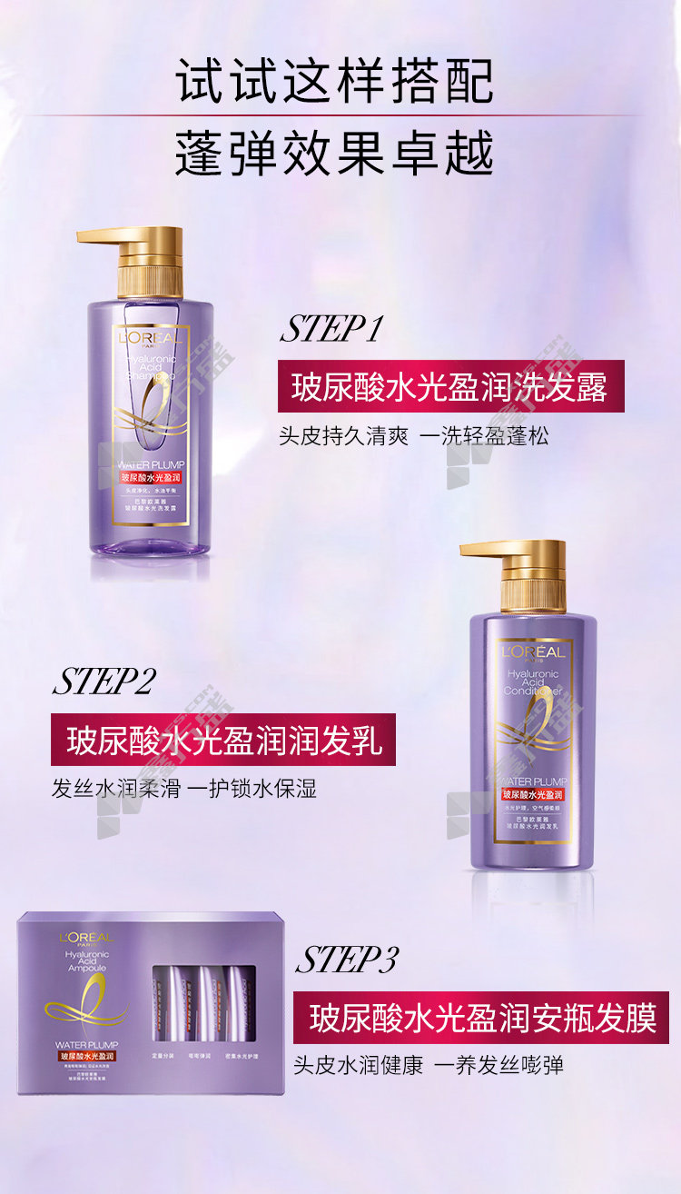 商品名称: 欧莱雅玻尿酸水光盈润洗护套装 洗发露440ml+润发乳440ml 蓬松柔滑 头皮清爽