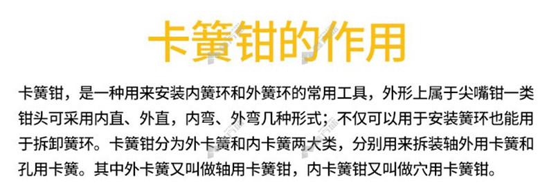 包装清单:威力狮粘塑柄卡簧钳 外卡直头*1