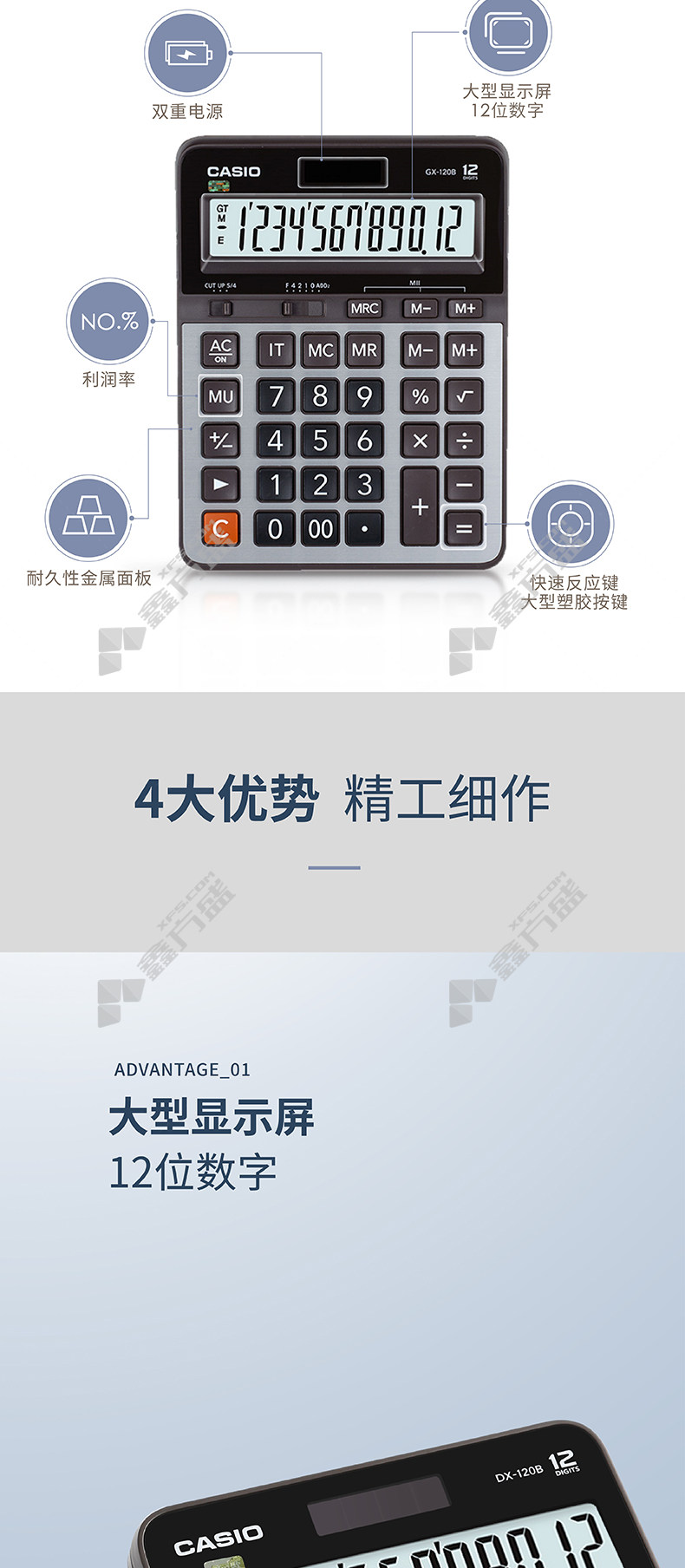 商品名称: 卡西欧 GX-120B 商务计算器 12位 不支持语音功能 灰色