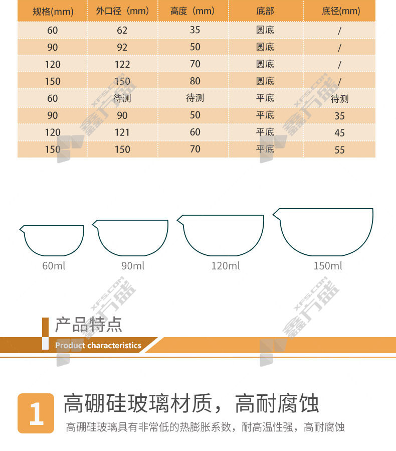 商品名称: 湘玻 圆底蒸发皿 60mm