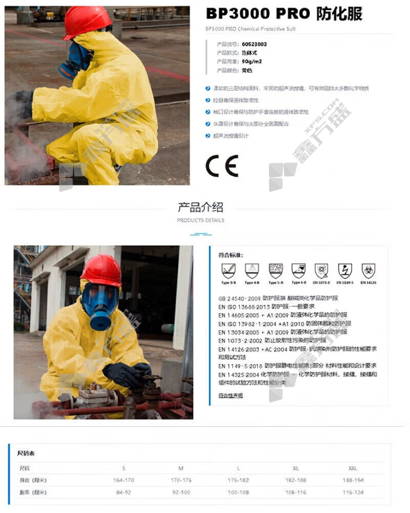 商品名称: 羿科 带帽 国标3级防化服 S 黄 60523003