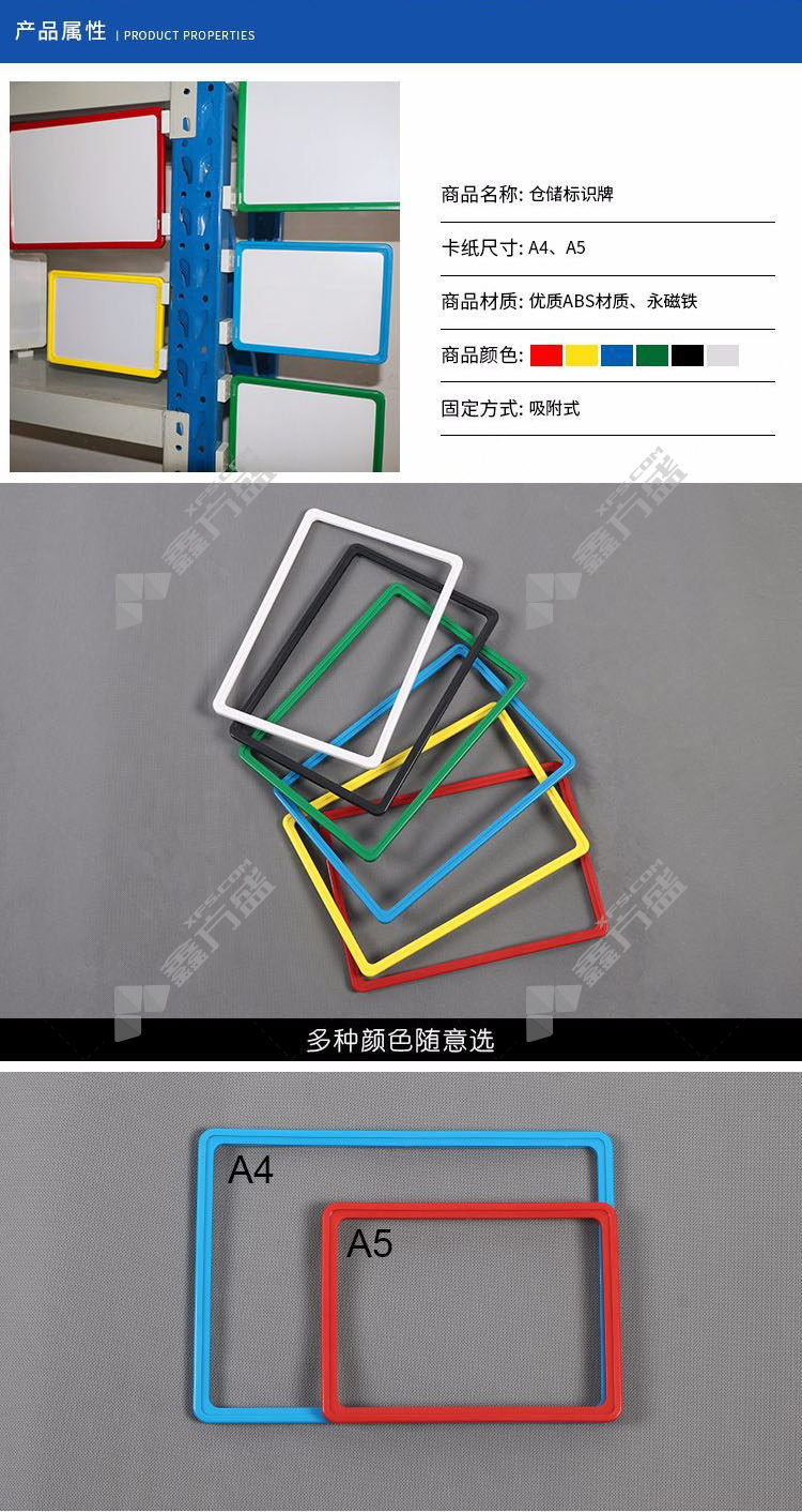 商品名称: 冰禹 BY-3057 磁性标签牌 双磁铁 A4蓝色(2个装)