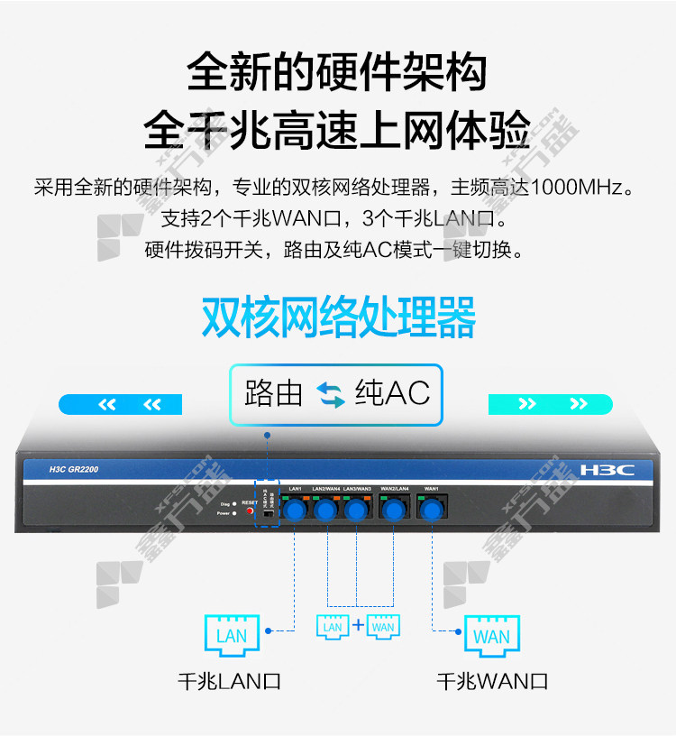 • 新华三 GR2200千兆端口 有线路由器  GR2200千兆端口 企业级VPN有线路由器 内置AC