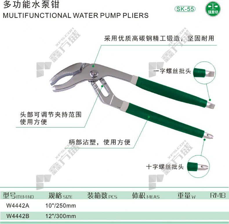 商品名称: 威力狮多功能水泵钳 W4442B 12寸